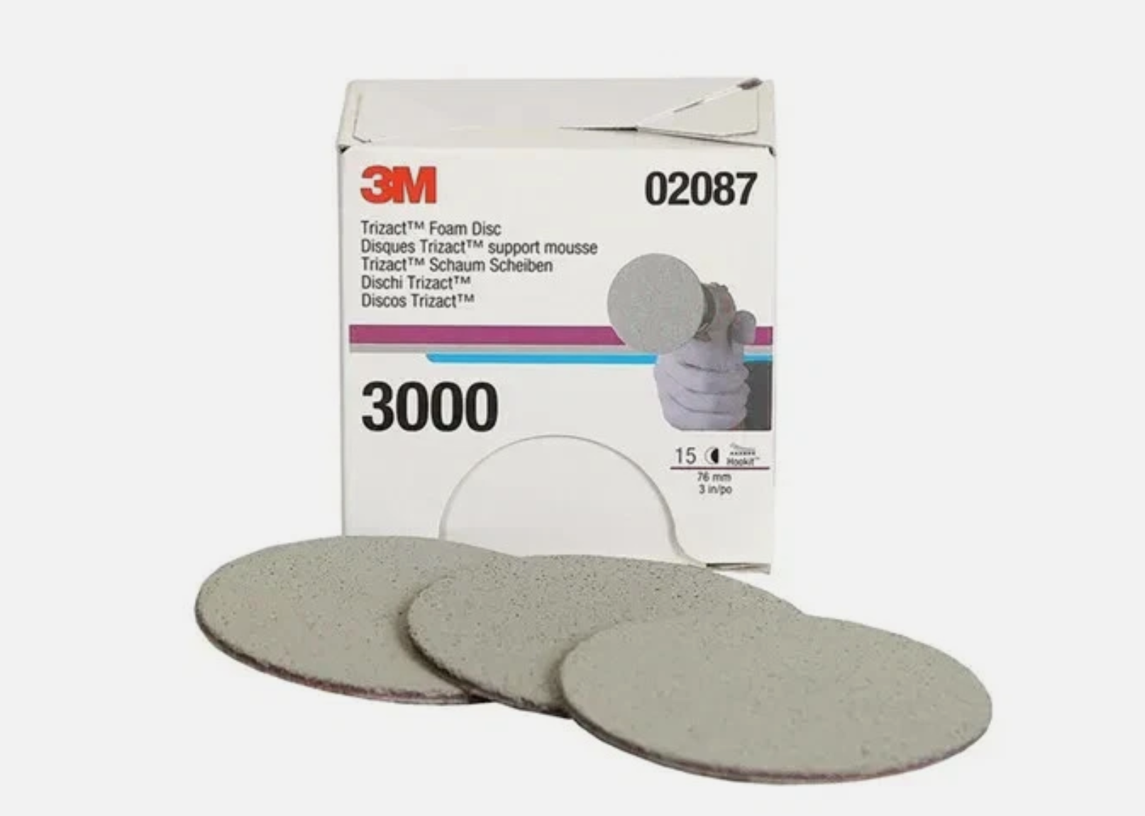 These 3000-grade 3M™ Trizact™ Hookit™ Foam Abrasive Discs help increase shop productivity by eliminating the need for aggressive wool compounding pads and reducing polishing time.