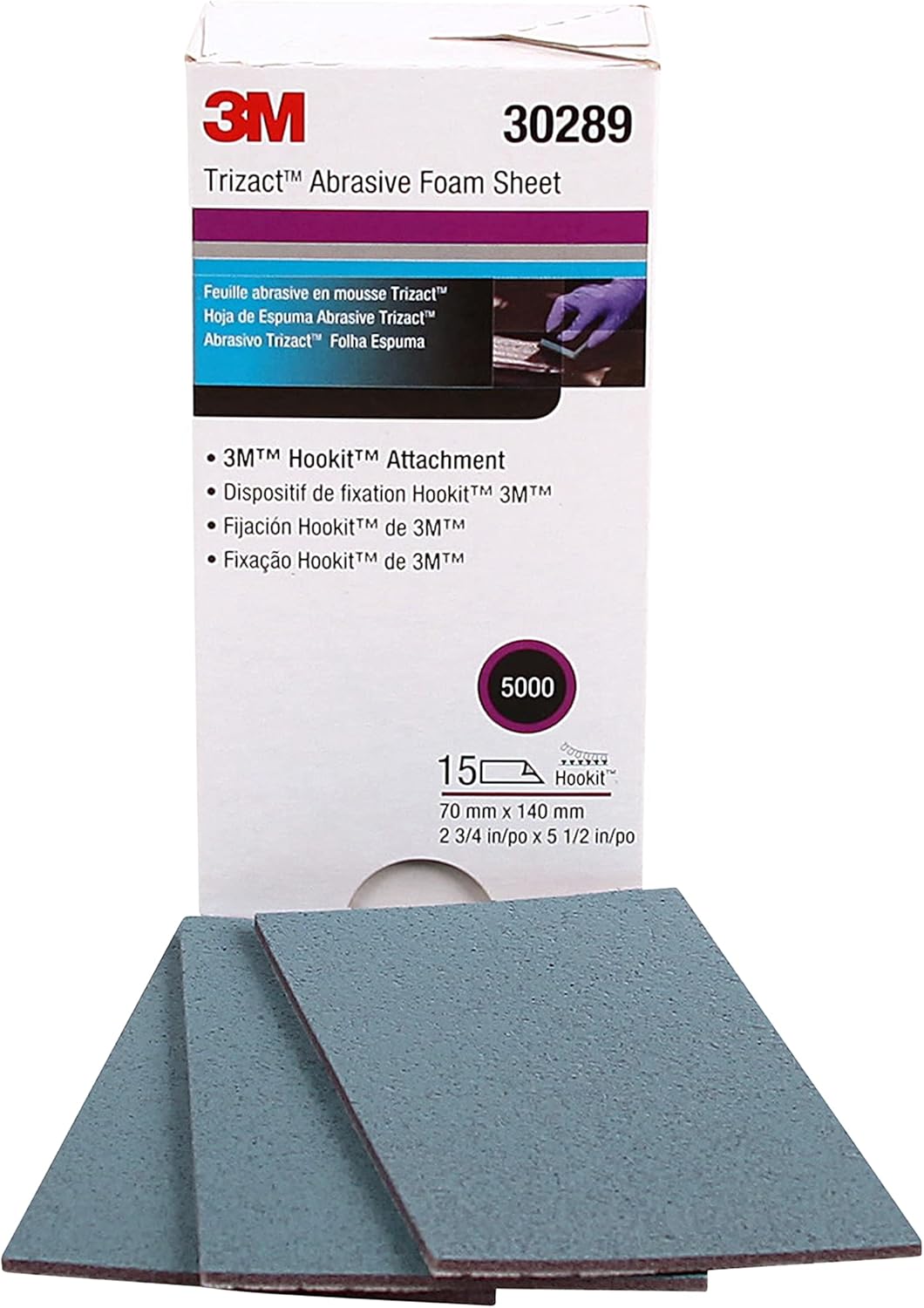 15-pcs Carton, #5000, 3M 30289 Trizact Hookit Foam Sheets, 2-3/4 in x 5-1/2 in