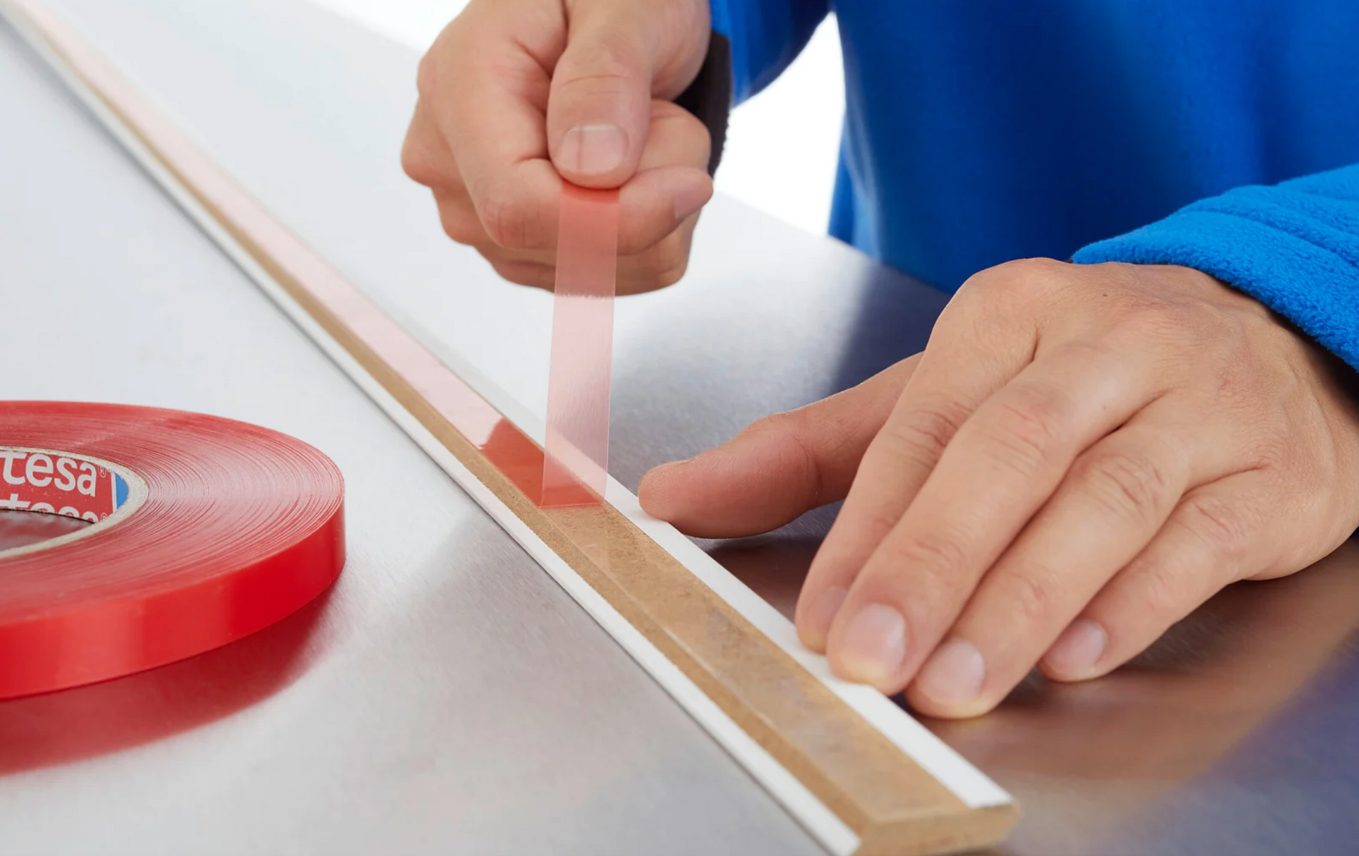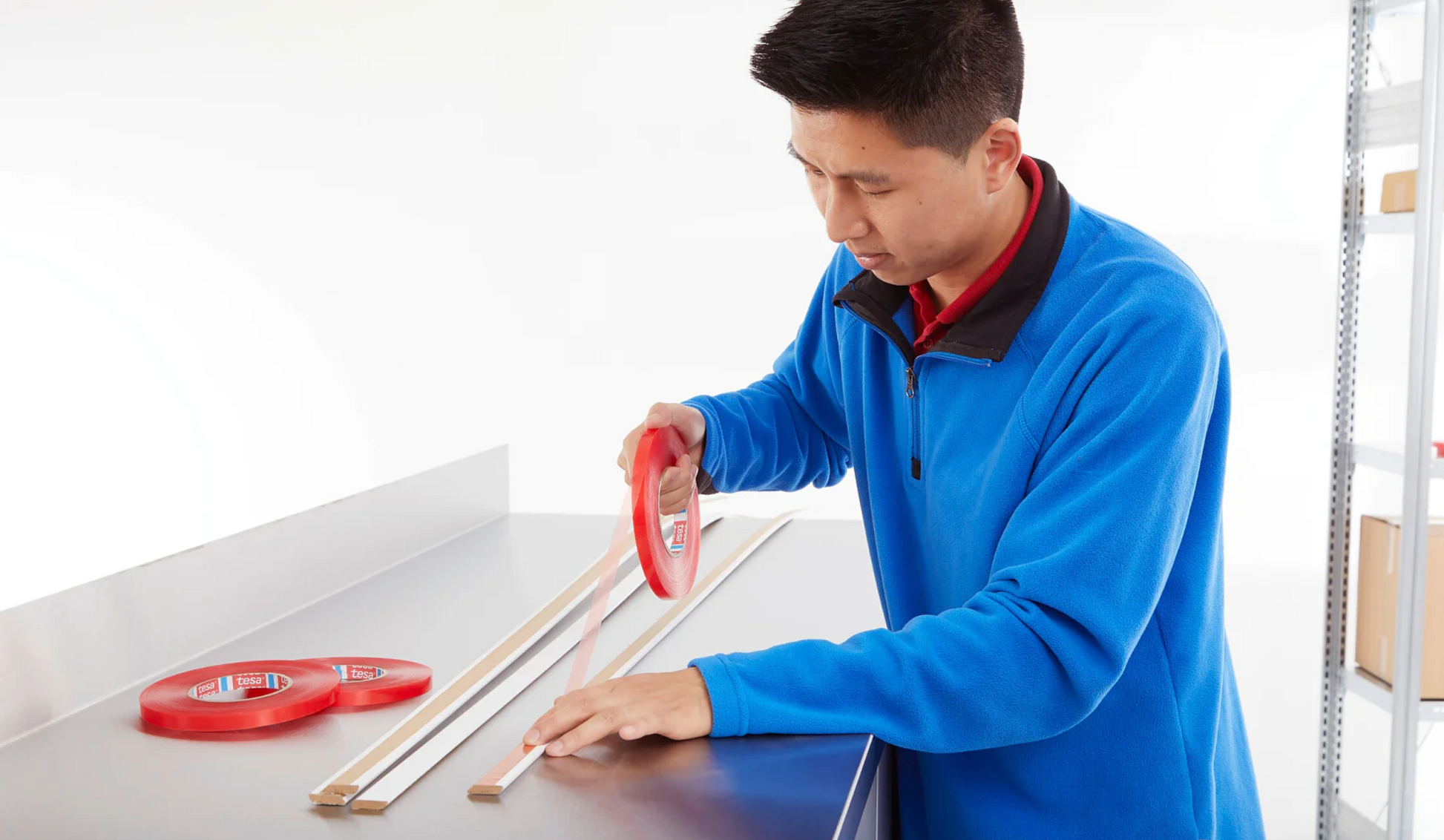 tesa® 4965 Original is a transparent, double-sided industrial mounting tape consisting of a PET backing and a tackified acrylic adhesive. Its adhesive technology is based on a patented and protected product formulation. Across all industries, tesa® 4965 Original is used to improve processes and applications. Based on tesa® 4965's patented and protected technology, its unique performance is demonstrated through outstanding qualities such as versatility, durability, and safety. The double-sided industrial mounting tape is able to withstand numerous environmental factors such as humidity, UV light, and temperatures of up to 200°C for limited periods of time. The tackified acrylic adhesive offers excellent hold on various surfaces, high tack, and good shear strength.